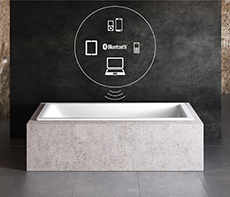 SOUND WAVE is the acoustic innovation for every bathroom and compatible with all Kaldewei bathtub models. Six acoustic panels and two body sound transducers are attached to the tub's inside and remain invisible to create an exceptional sound experience. SOUND WAVE plays back any audio file via Bluetooth from a smartphone, laptop, tablet, or PC. Not only spa lovers are convinced of the SOUND WAVE, which revolutionizes the bath experience, even music professionals such as sound engineer Bryan Gallant from The Warehouse Studio in Vancouver, Canada, has already installed the SOUND WAVE in the studio so musicians can experience a new way of listening to their own music after a session. The Warehouse Studio has hosted many of Rock's greatest such as REM, Nickelback, Billy Joel, Muse, Metallica, AC/DC, and Bryan Adams.