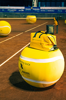 The vibrant color yellow acts as a unifying theme. It is both – leitmotif of Tennis & Friends and Mandarina Duck’s iconic color. Yellow stands strong, as a symbol for positivity and energy, but also for the dynamic spirit of health and eco-friendly innovation. What connects Mandarina Duck and Tennis & Friends, is a shared focus on sustainability – in terms of environmental consciousness, but also in terms of personal health. The heart of the event took place on October 11th, with Mandarina Duck’s presentation of their visually stunning installation featuring tennis balls at Circolo Foro Italico. Guests had been warmly invited for drinks in the courtyard, with a live DJ set by Dorian. Tennis & Friends offered free medical check-ups to all participants during the event – emphasizing their passion for reinforcing the importance of health prevention and well-being. A mission which Mandarina Duck proudly supports.